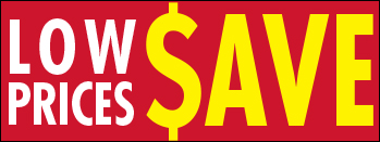 39-Low Prices SAVE-Red/Yel - 13oz Outdoor Vinyl Banner w/Hem & Grommets